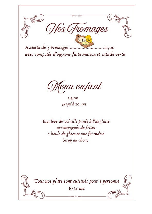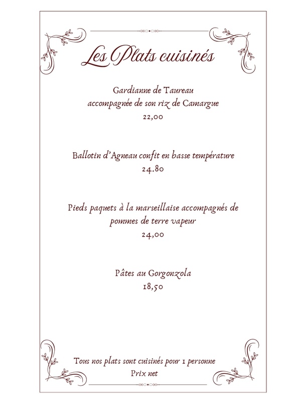 Découvrez la carte de Chez Maria et Didier, restaurant traditionnel à Tarascon dans les Bouches-du-Rhône !