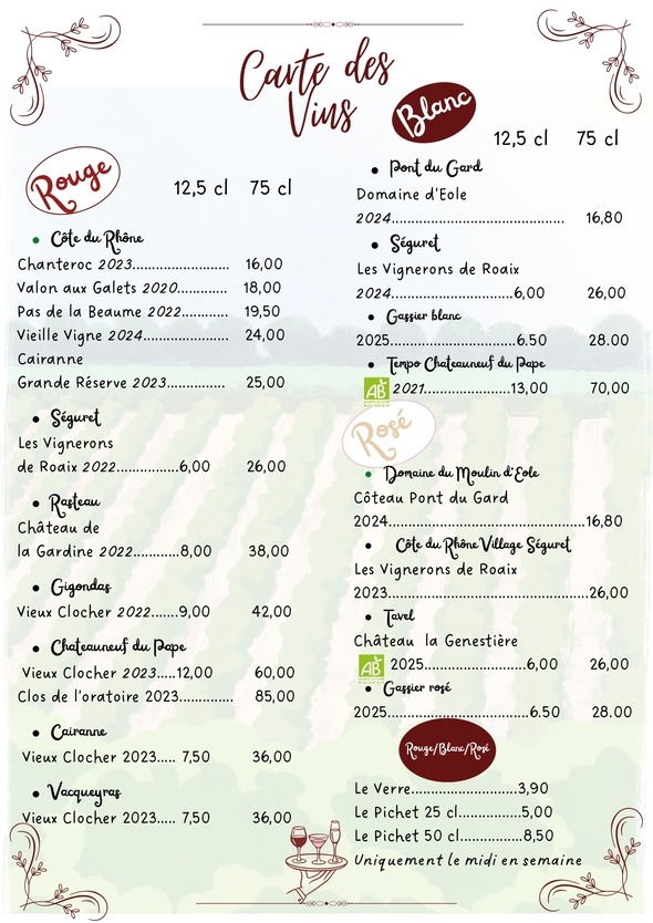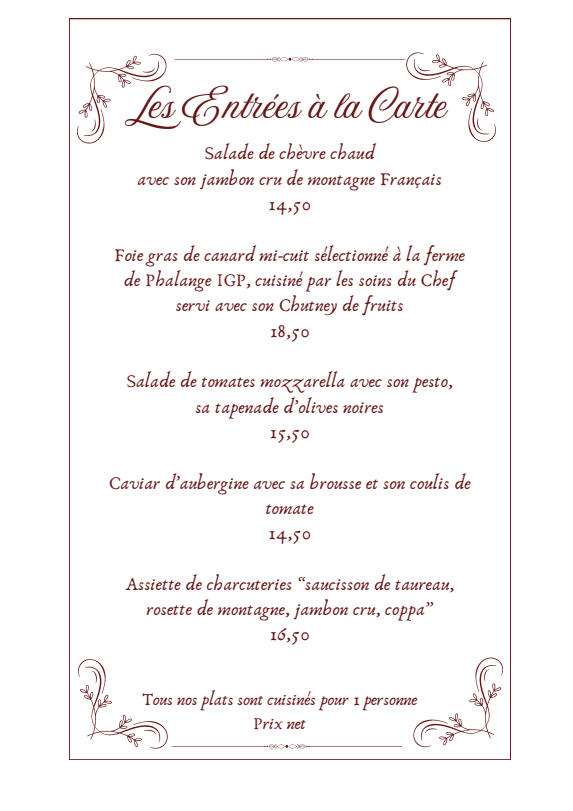 Découvrez la carte de Chez Maria et Didier, restaurant traditionnel à Tarascon dans les Bouches-du-Rhône !